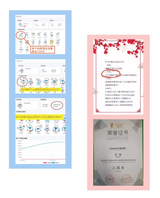 其实这不是辛巴狗表情第一次获奖了,腾讯qq表情2018春节征集活动,《辛巴狗新年篇》荣获二等奖、《辛巴狗神经篇表情》荣膺新光奖......